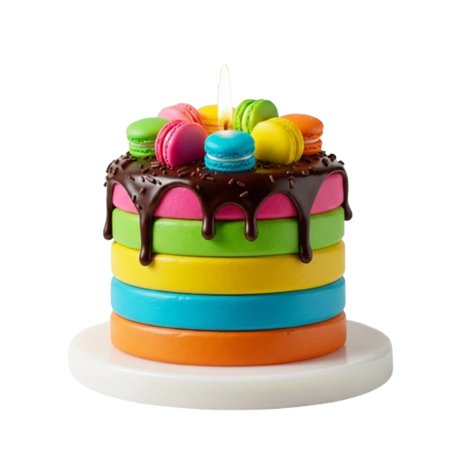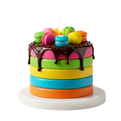 Vigyázat: Megtévesztően édes! Ez a gyertya nem csak egy illat, hanem a lakásod legszínesebb dísze. Öt vibráló réteg, csokoládécsorgatás és színes macaronok találkozása – bűntudatmentes kényeztetés a szemnek és a léleknek.